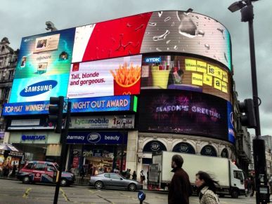 Monday brought a visit to Piccadilly Circus, Leicester Square, and Trafalgar Square, all within walking distance of each other in Westminster. “Circus” refers back to the Latin word for circle, indicating “a round open space at a street junction.” There are several “circuses” in London, including Piccadilly and Oxford. Piccadilly Circus is a popular junction for tourists as it is close to shopping and entertainment in the form of multiple theaters. Its neon signs and video displays remind one of NYC’s Times Square (but on a much smaller scale, of course). The multitude of posters displaying various theater productions are mouth-watering for anyone who indulges in musicals. One that caught my eye was “The Bodyguard” which opened just a few months ago at London’s Adelphi Theatre. I am hopeful that this will make its way to New York soon!