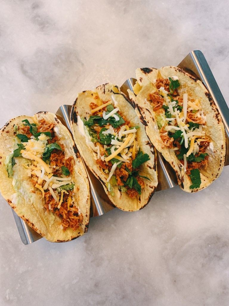 Our final solo week of cooking was pretty easy because I made a huge batch of chicken tinga for tacos. We had some delicious tacos for three days! I know most people would get tired of eating the same thing each day, but I never tire of tacos. Tacos also have a special place in my heart because they were the first thing I had an appetite/craving for during my first pregnancy!
